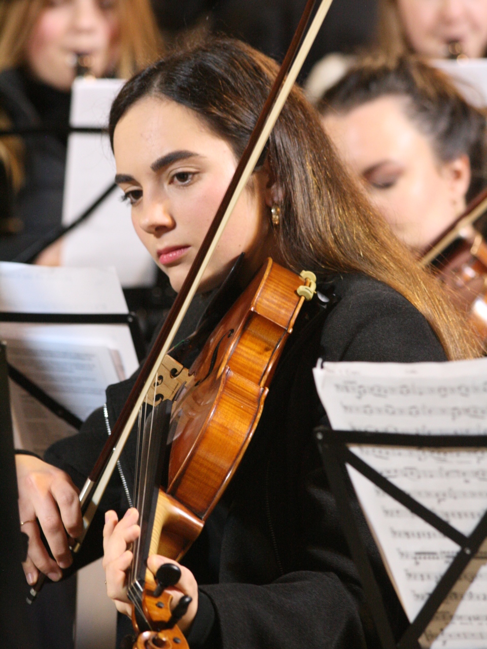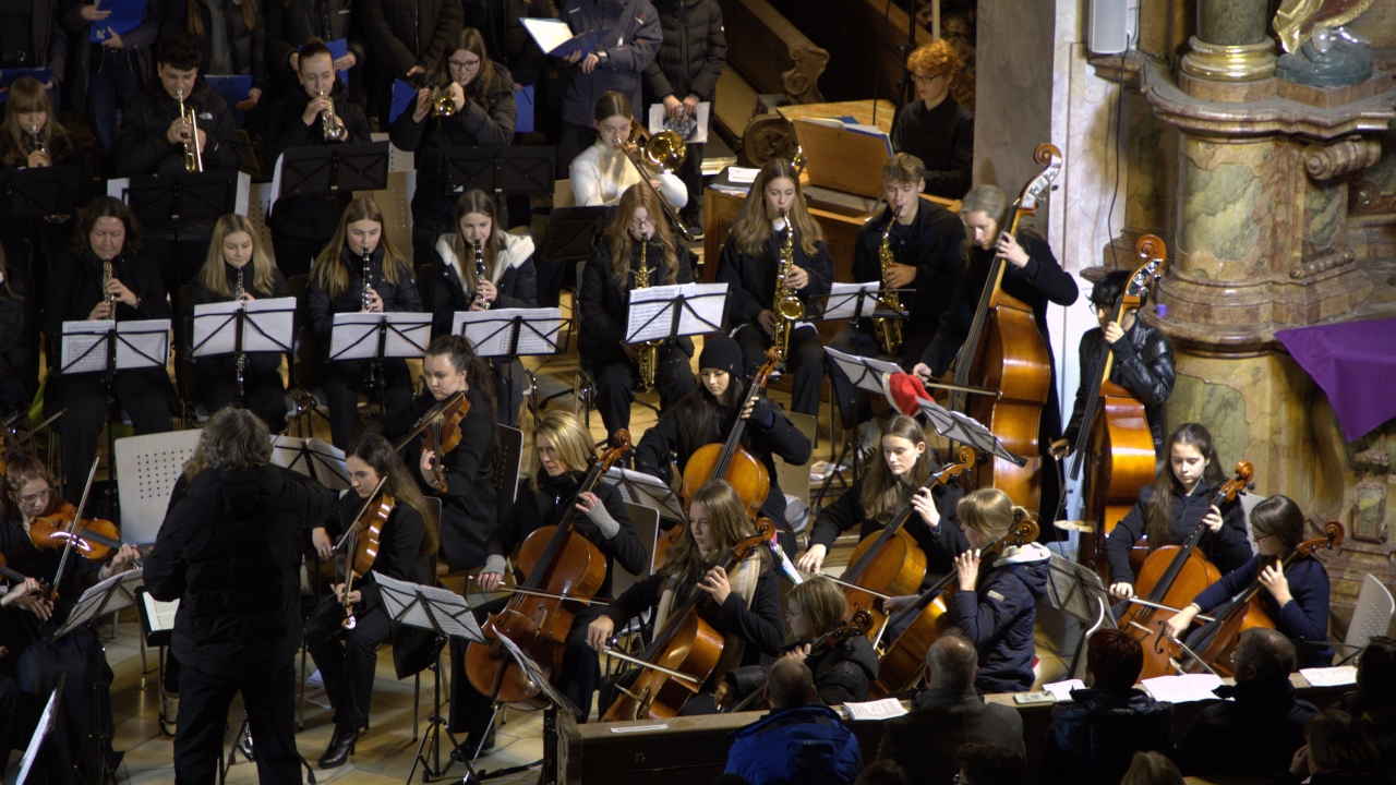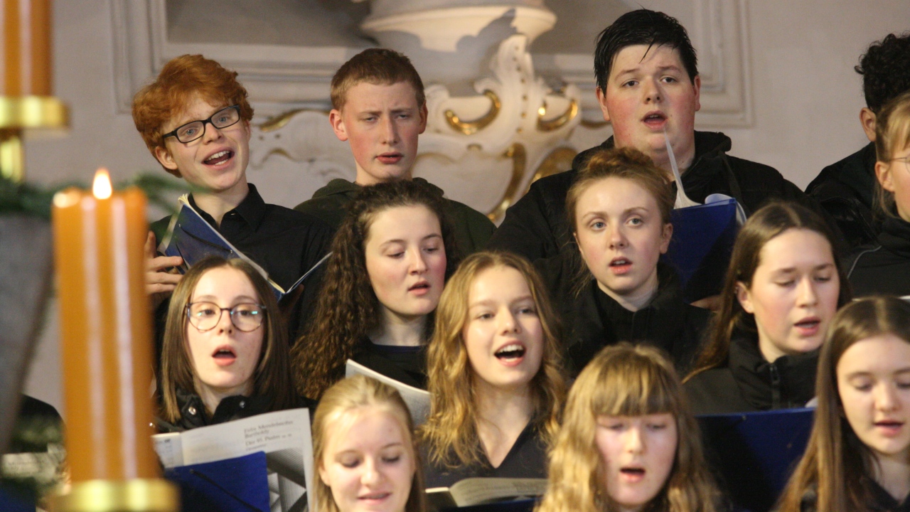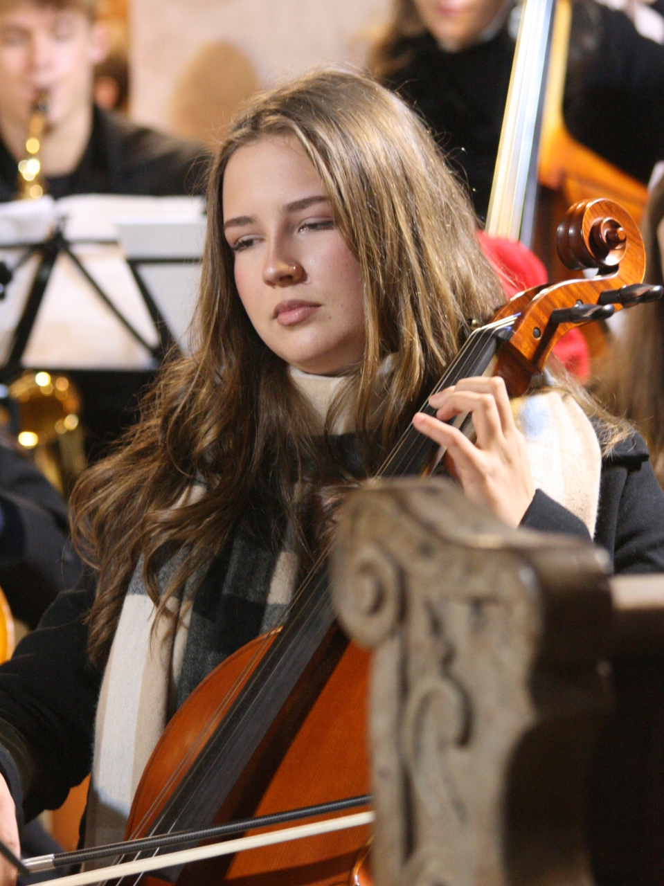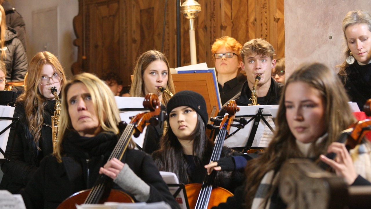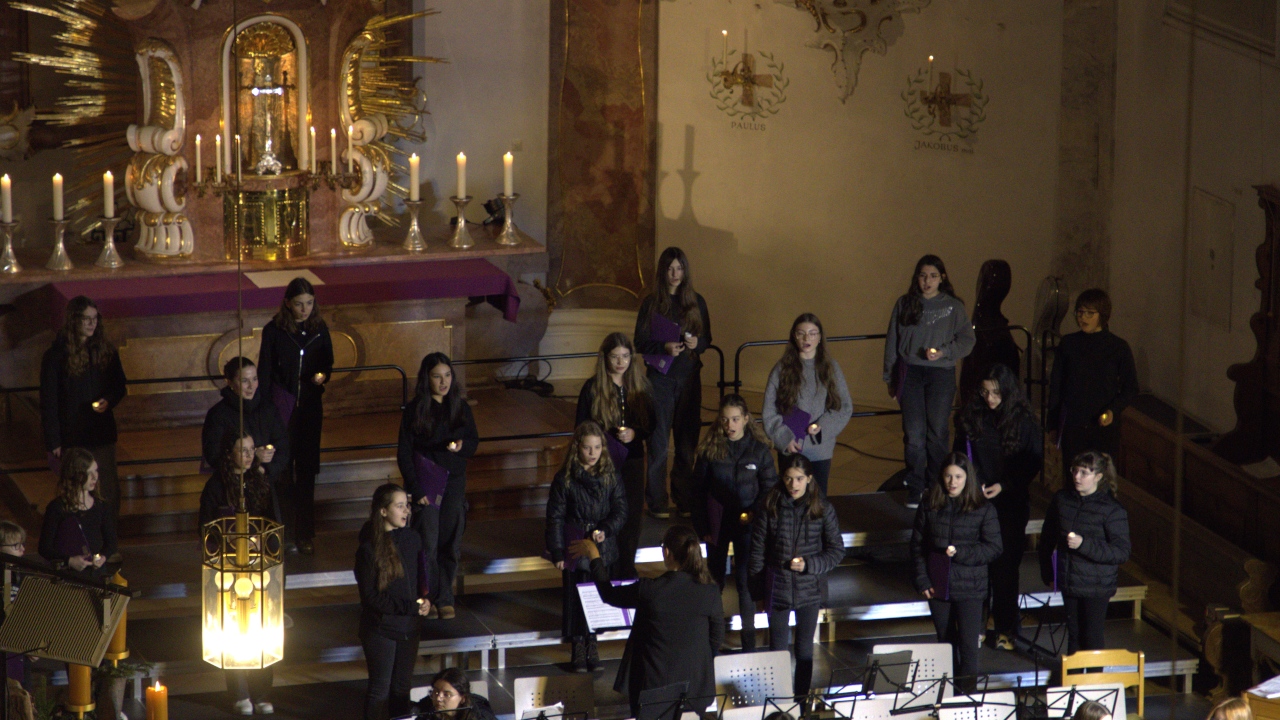 Mit Gesangssolisten (Vokalensemble Q12/G8 und G9), Mittelstufenchor (Verena Dopfer), großem Chor (Klaus Nürnberger), Bläserquintett (Ingrid Menzel) und großem Orchester (Thomas Rausch) stimmten über 160 Mitwirkende musikalisch auf das Weihnachtsfest ein.