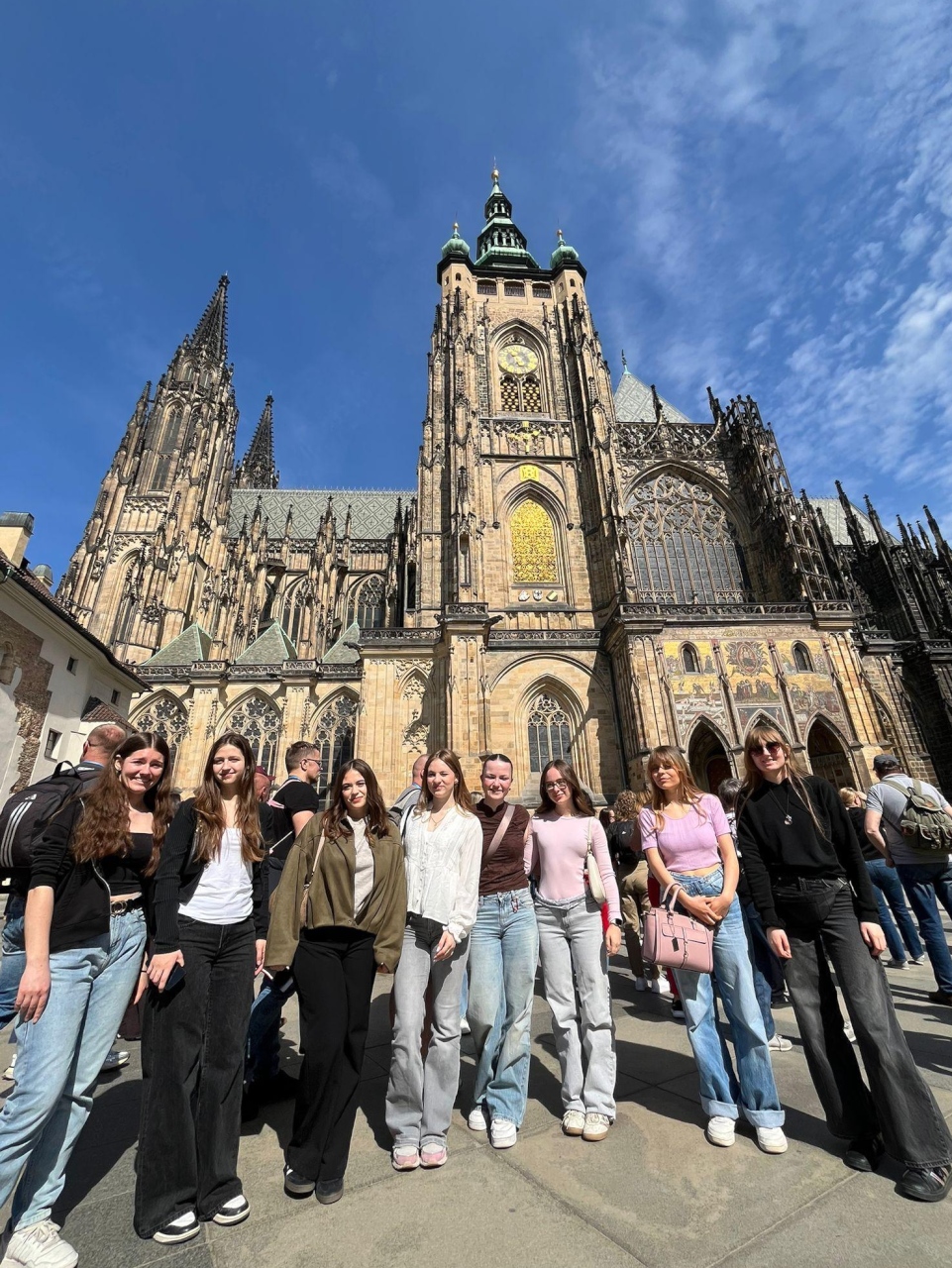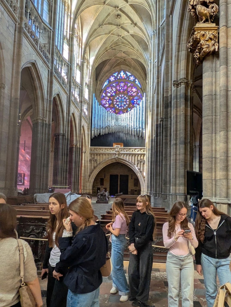 Heute erlebten wir unseren ersten richtigen Tag in Prag. Am Morgen starteten wir mit einem Besuch der Prager Burg, einem der bedeutendsten Wahrzeichen der Stadt. Dort erhielten wir spannende Einblicke in die Geschichte und Architektur der Anlage. Besonders beeindruckend war die Besichtigung des Veitsdoms auf dem Burggelände, dessen Größe und kunstvolle Gestaltung uns nachhaltig fasziniert haben.