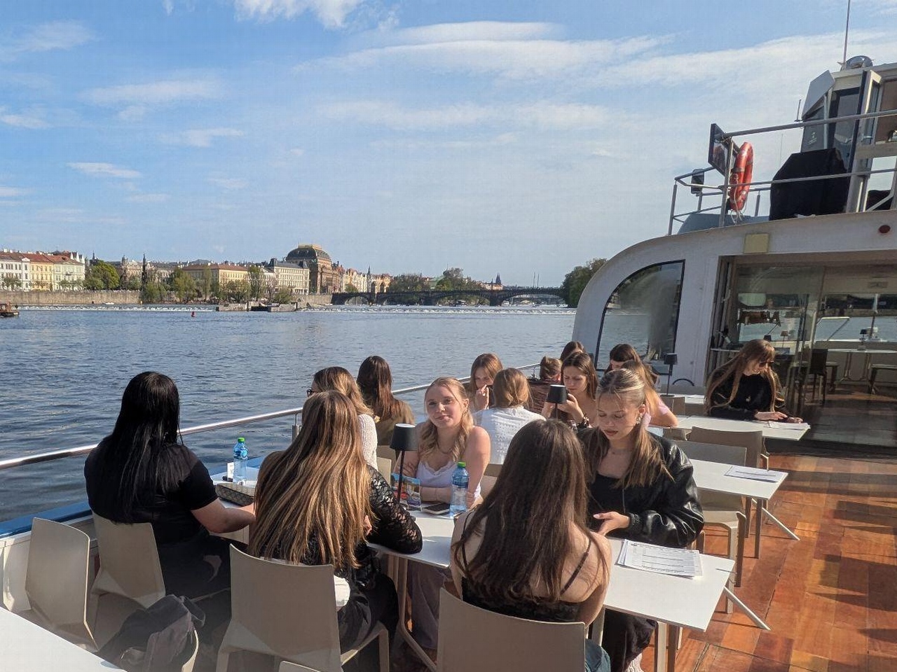 Den Abschluss unseres Tages bildete eine gemeinsame Bootstour auf der Moldau. Vom Wasser aus konnten wir die Stadt noch einmal aus einer ganz neuen Perspektive erleben und die vielen historischen Gebäude entlang des Ufers bewundern.