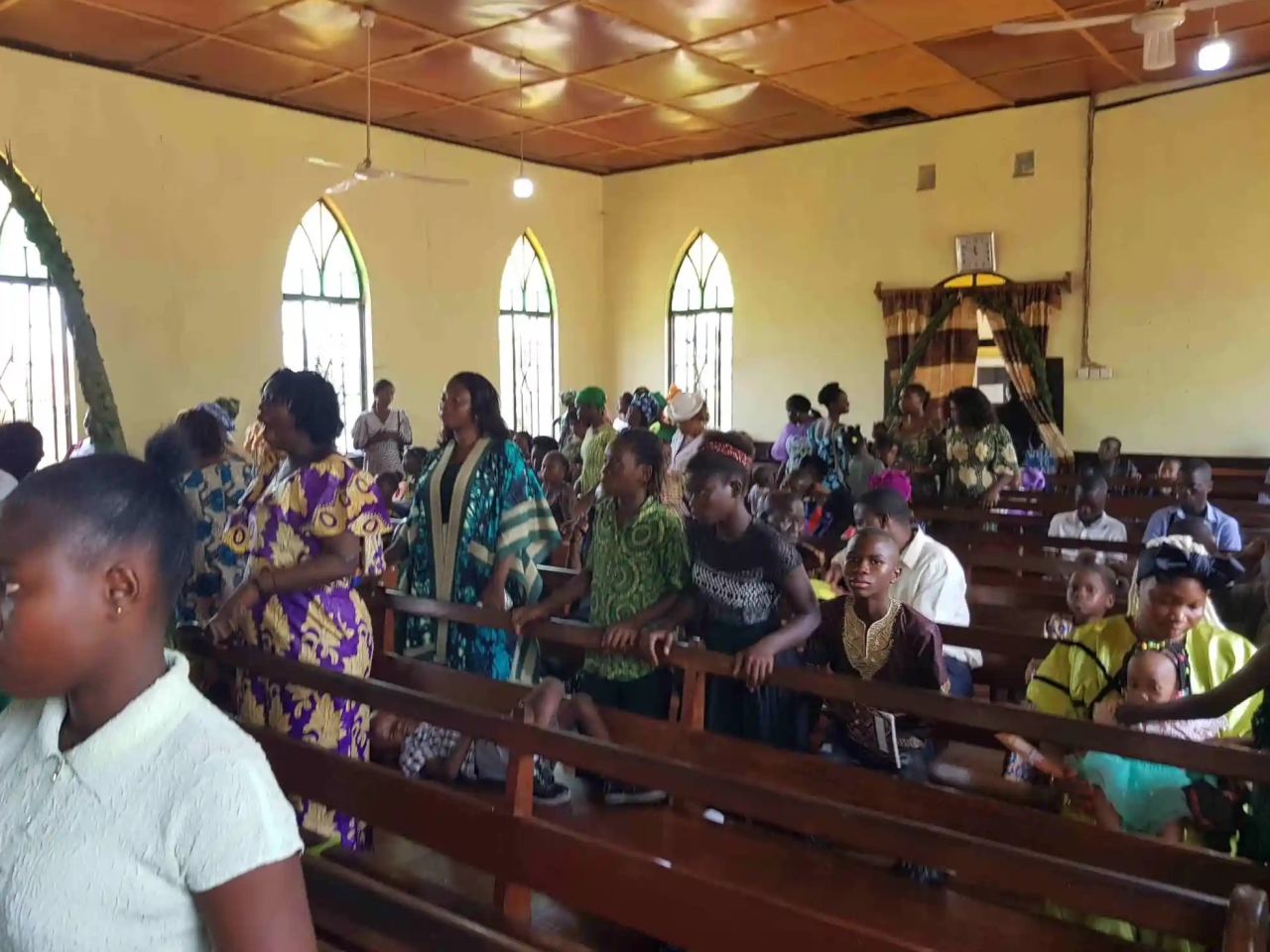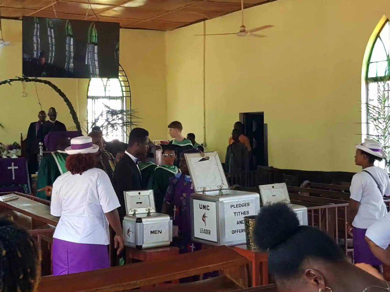 Heute was Psalmsonntagsgottesdienst – 3 Stunden Tanzen, Singen und Feiern – und mehrfach Opfer einsammeln – eher „tanzend nach vorne bringen“.