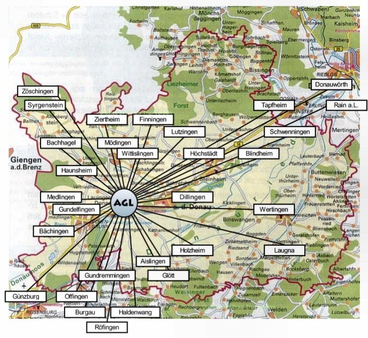 Unsere Schüler kommen zum ganz überwiegenden Teil aus dem Landkreis Dillingen, aber auch aus den benachbarten Kreisen Günzburg und Donau-Ries besuchen Schülerinnen und Schüler das Albertus-Gymnasium.