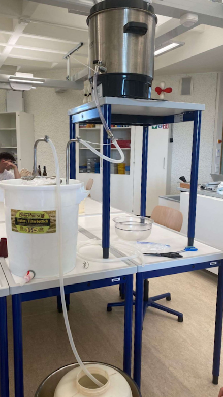 Das P-Seminar Bierbrauen (Leitfach Biologie, Herr Plomer) versucht sich am bayerischen Lieblingsgetränk. Angefangen hat alles zu Beginn des Schuljahres 2022/23 mit dem seminarübergreifenden Thema der Berufsorientierung. Ab dem zweiten Halbjahr widmeten wir uns dann ganz unserem Projekt dem „Bierbrauen“. Zu Beginn teilten wir uns in verschiedene Kleingruppen auf: die PR-Gruppe, die Material-Gruppe und die Brauvorgang-Gruppe.