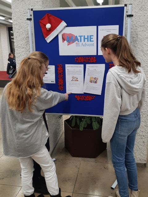 Jeden Tag im Dezember hängen frühmorgens schon die neuen Knobelrätsel in der Aula aus. Wer mitmacht beim Online-Adventskalender "Mathe im Advent" kann tolle Preise gewinnen. Auch schulintern winken pro Klassensieger kleine Preise.