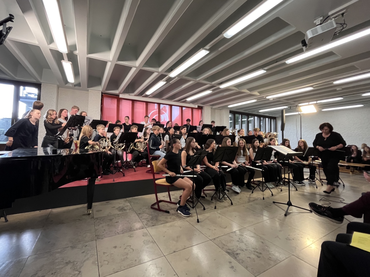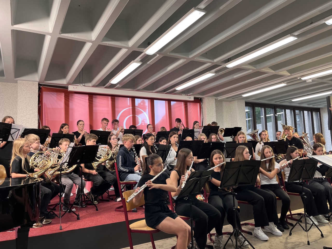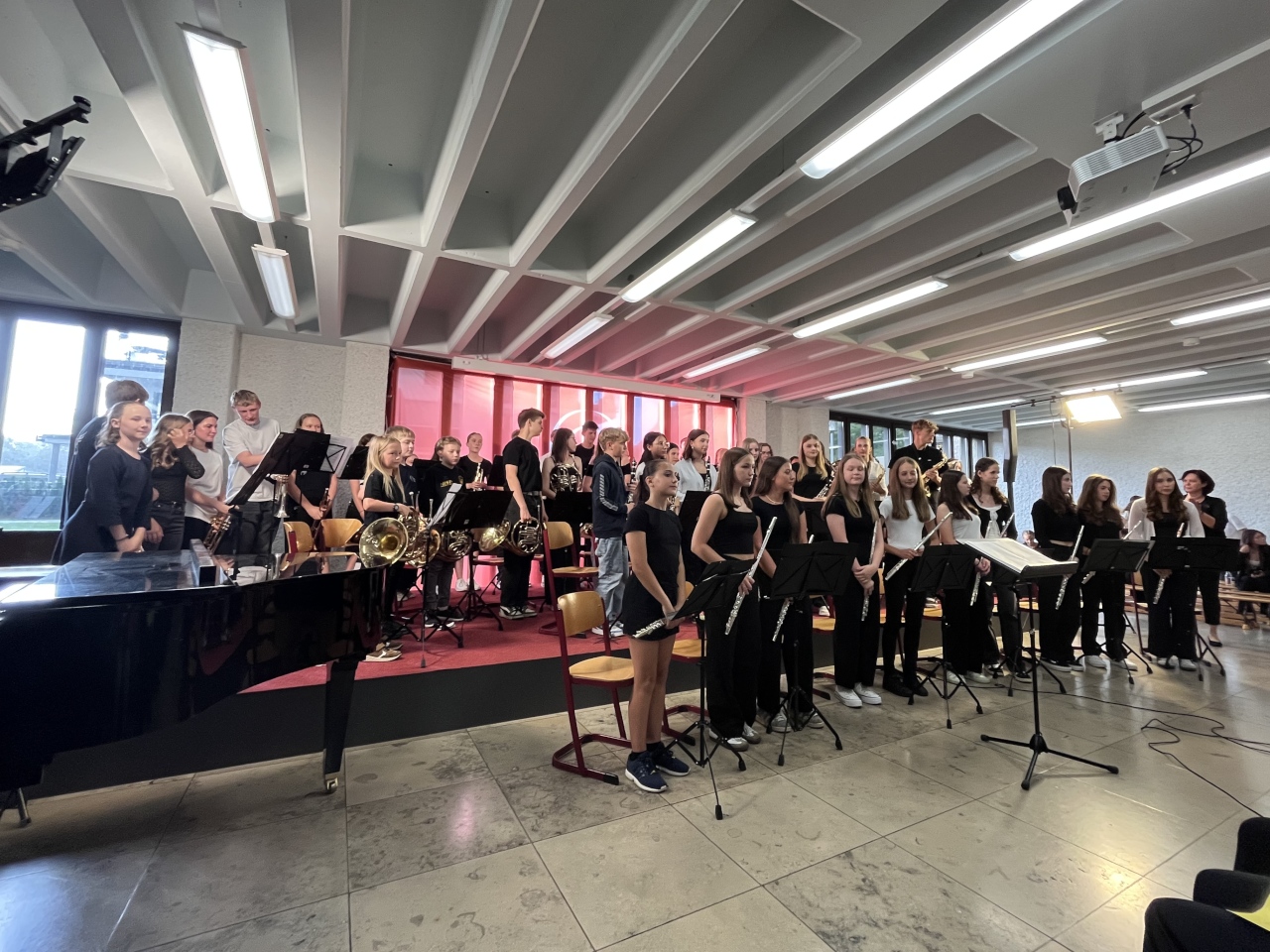 Das Sommerkonzert des Albertus-Gymnasiums Lauingen lockte am 16.07.2025 zahlreiche Besucher in die Aula. Das Unterstufenorchester (Leitung: Thomas Rausch) eröffnete den musikalischen Reigen beschwingt, souverän und klangvoll in großer Streicher- und Bläserbesetzung. Die „Young Albertus Stars“ (Leitung: Ingrid Menzel) mit Holz- und Blechbläsern vorwiegend aus 5. Klassen bewiesen bei ihrem Debüt eindrucksvoll die Qualität der Instrumentalausbildung, insbesondere am musischen Zweig. Mit ausgezeichneter Stimmgebung und sicherer Darbietung erfreute der Mittelstufenchor (Leitung: Verena Dopfer) mit mehrstimmigen Arrangements eingängiger Popsongs. Zum Abschluss begeisterte das große Sinfonische Blasorchester (Leitung: Ingrid Menzel) mit über 50 Mitwirkenden aller Jahrgangsstufen in hervorragender Spieltechnik und Klangqualität mit stimmungsvollen und mitreißenden Melodien aus Musical, Rock und Jazz sowie zwei Zugaben das freudig klatschende Publikum.
