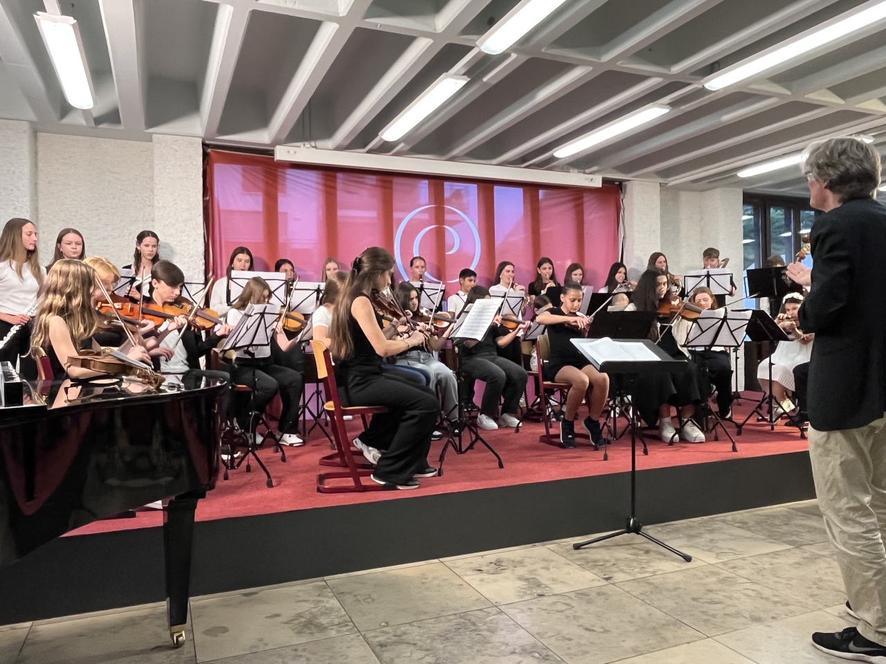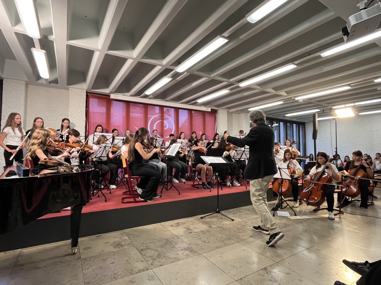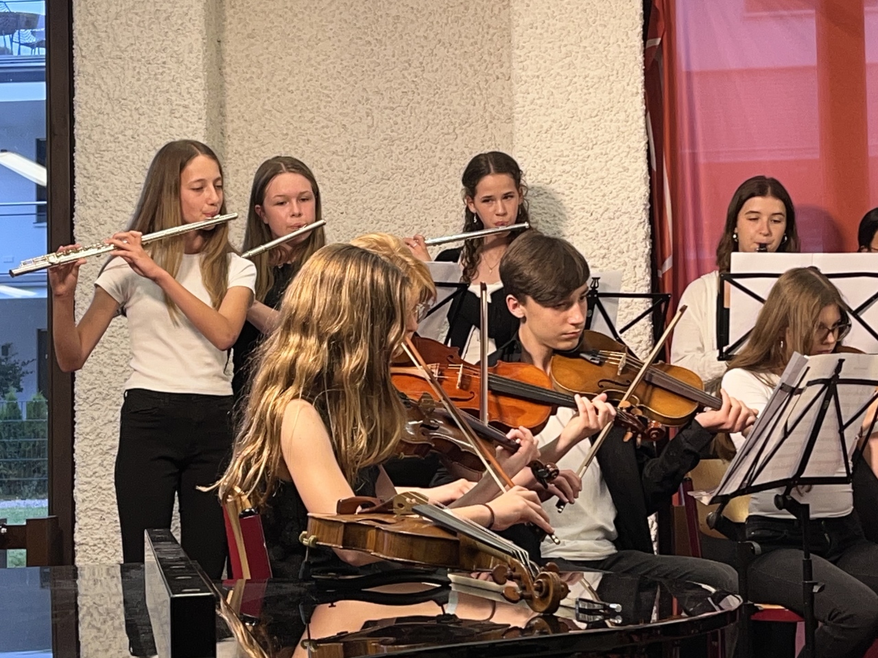Das Sommerkonzert des Albertus-Gymnasiums Lauingen lockte am 16.07.2025 zahlreiche Besucher in die Aula. Das Unterstufenorchester (Leitung: Thomas Rausch) eröffnete den musikalischen Reigen beschwingt, souverän und klangvoll in großer Streicher- und Bläserbesetzung. Die „Young Albertus Stars“ (Leitung: Ingrid Menzel) mit Holz- und Blechbläsern vorwiegend aus 5. Klassen bewiesen bei ihrem Debüt eindrucksvoll die Qualität der Instrumentalausbildung, insbesondere am musischen Zweig. Mit ausgezeichneter Stimmgebung und sicherer Darbietung erfreute der Mittelstufenchor (Leitung: Verena Dopfer) mit mehrstimmigen Arrangements eingängiger Popsongs. Zum Abschluss begeisterte das große Sinfonische Blasorchester (Leitung: Ingrid Menzel) mit über 50 Mitwirkenden aller Jahrgangsstufen in hervorragender Spieltechnik und Klangqualität mit stimmungsvollen und mitreißenden Melodien aus Musical, Rock und Jazz sowie zwei Zugaben das freudig klatschende Publikum.