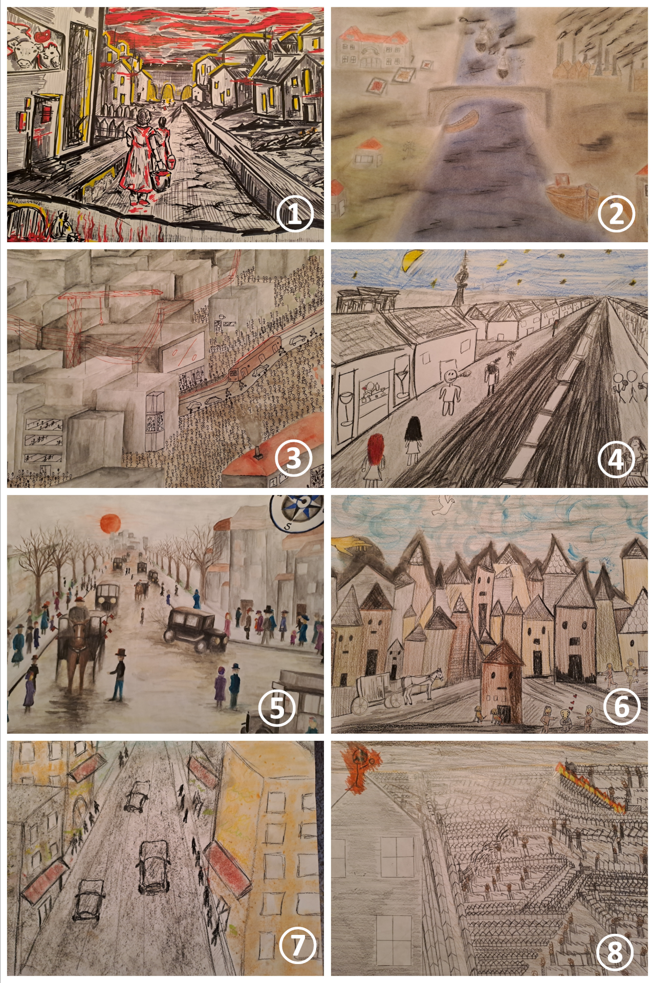 So versuchten sich unsere Q12-er in einer Doppelstunde im November daran, expressionistische Stadtgedichte zu verbildlichen. Um voll und ganz in die expressionistische Stimmung einzutauchen, lauschten sie dabei auch noch den dissonanten und teilweise doch recht verstörenden Klängen expressionistischer Kompositionen.