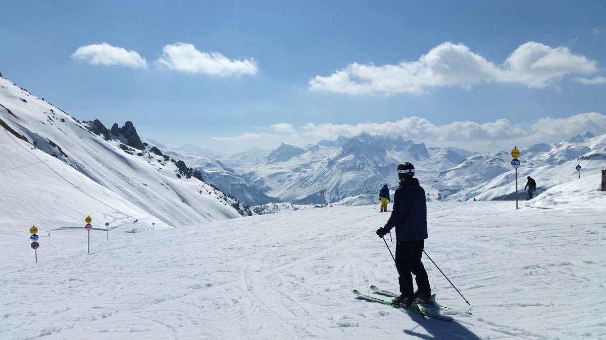 Während die Fortgeschrittenen und „Profis“ bereits die roten und schwarzen Pisten unsicher machen, fällt der erste Tag für die Anfänger noch etwas beschwerlich aus: Sie beginnen mit Bogenfahren in einem Slalomparcours, bremsen auf Kommando und schnallen sich nach Stürzen die Skier mühsam wieder an ihre Füße. Das alles gehört dazu. Doch Dank ihrer modernen Skiausrüstung können sie spätestens am zweiten Tag die Skilifte der blauen Pisten benutzen. Ab diesem Moment sind auch sie fast nicht mehr zu bremsen.