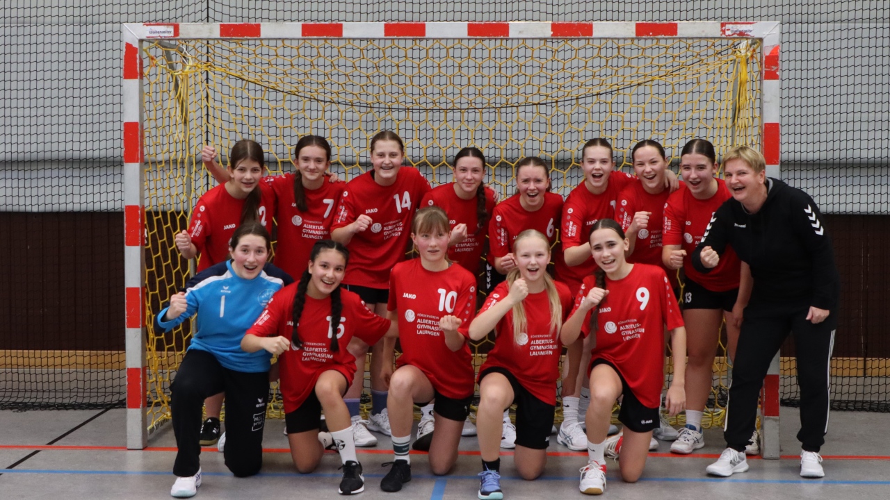 Im ersten Spiel wartete gleich ein richtig starker Gegner auf das AGL. Gegner war das Gymnasium Neu-Ulm, die im Wesentlichen mit der Vereinsmannschaft des FC Burlafingen (Landesliga) identisch ist. Wie schwer die Aufgabe war, sieht man daran, dass die Neu-Ulmer letztes Jahr das Bundesfinale des Wettbewerbs in Neu-Ulm erreicht hatten. Obwohl die Lauingerinnen alles gaben, musste man sich am Ende mit 10:17 geschlagen geben. Im zweiten Spiel stand man dann Kempten gegenüber. Hier agierten die Mädels etwas unglücklich und verloren das Spiel mit einem Tor 19:20. Im letzten Spiel gegen Friedberg gaben die Mädels dann nochmals alles und gewannen das Spiel mit 12:10. Insgesamt belegten die AGL-Mädchen damit den 2. Platz im Regierungsbezirk Schwaben. Der Erfolg ist um so höher einzuschätzen, da bei den Gewinnerinnen mehrere Bayern- und Landesliga-Spielerinnen zum Einsatz kamen, während die Lauinger Spielerinnen in der Bezirksoberliga oder Bezirksliga spielen. Sportlehrerin Ingrid Rödter, die die Mannschaft betreute, war sehr stolz auf ihre Mädchen, da diese eine tolle Leistung über den gesamten Spieltag zeigten.