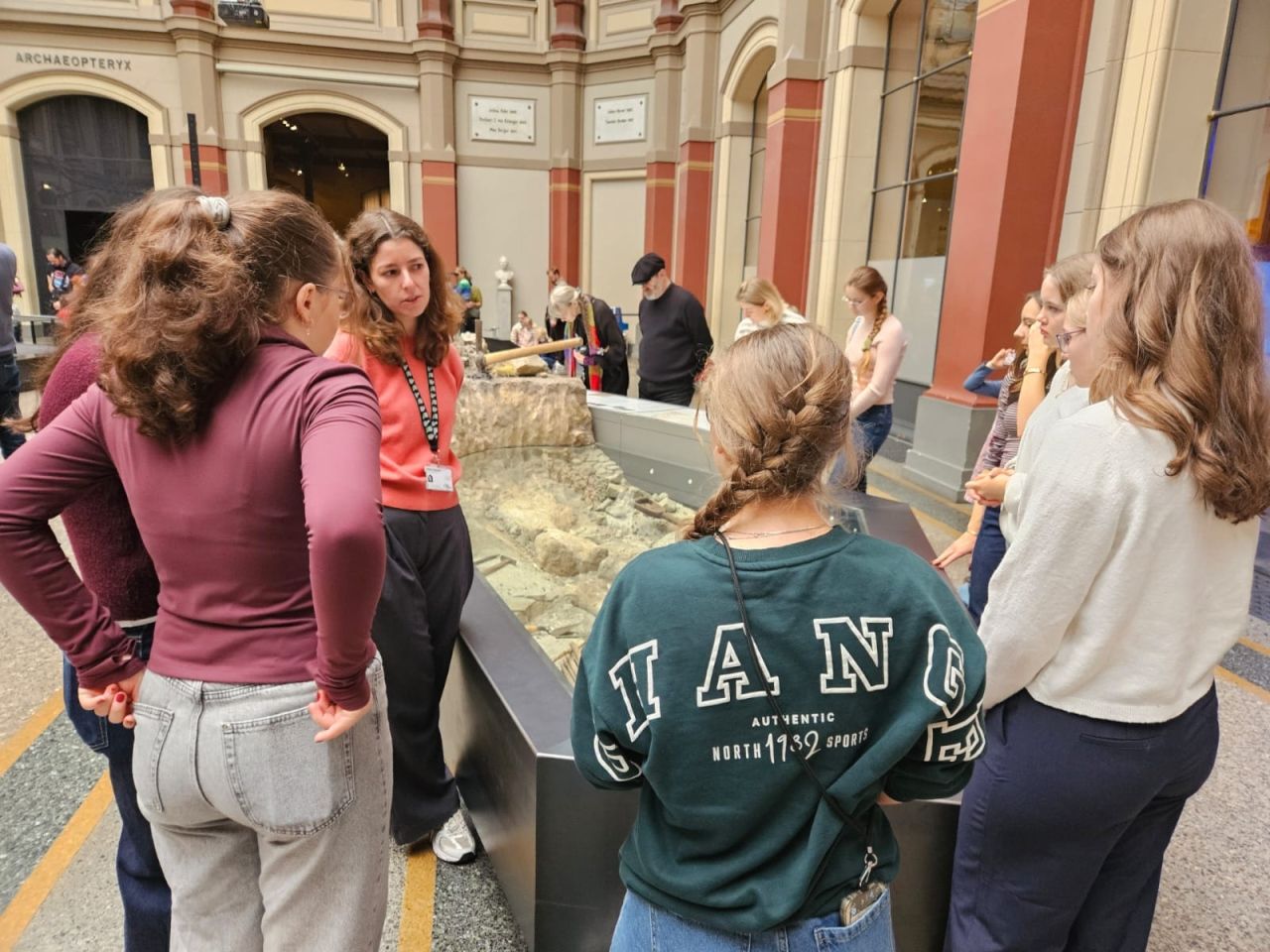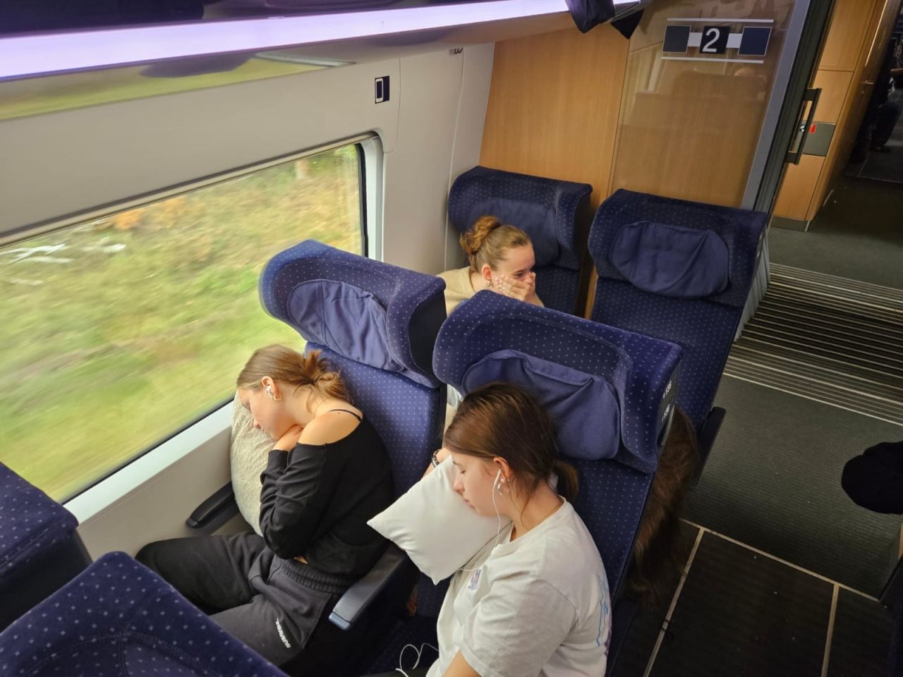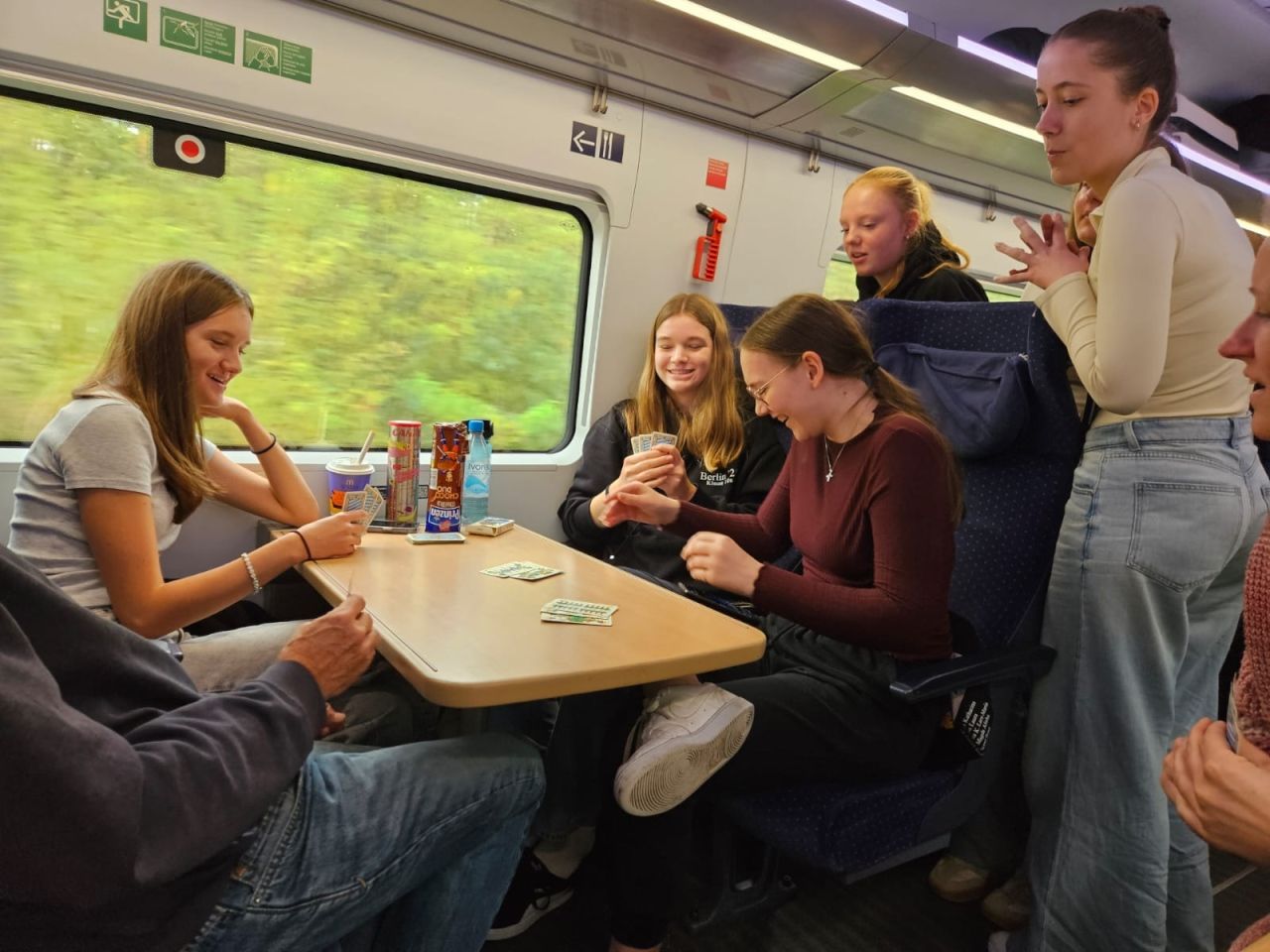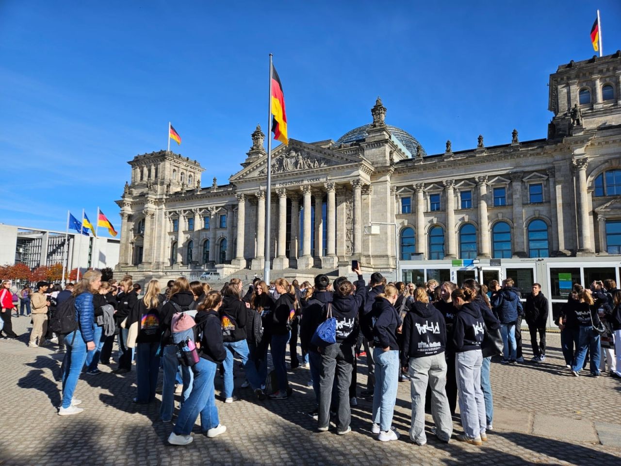 Nachdem das Wetter heute ab Mittag wieder ein Einsehen hatte, konnte die Essenspause durchaus in der Sonne verbracht werden - bevor es anschließend mit Teil 2 der Museen weiterging. Ein Großteil der Gruppe besuchte nun das Futurium und musste sich in ganz vielen Facetten mit der eigenen Zukunft auseinandersetzen - Bautechniken/-materialien, technische Erfindungen, Gentechnik, Ernährung, KI und vieles mehr. Zur gleichen Zeit setzte sich der Rest der Truppe mit dem deutschen Widerstand in der gleichnamigen Gedenkstätte auseinander. Völlig erledigt wurden beide Gruppen in den (Spät-)Nachmittag entlassen, um sich auf den großen Musicalabend mit 'Romeo und Julia' vorzubereiten und herzurichten... manche sollen dafür an die zwei Stunden gebraucht haben. Doch es war die Mühe durchaus wert und knapp Dreiviertel der Reisegesellschaft erlebten einen romantischen, aber auch tragischen, mitreißenden Abend, an welchem man mit Romeo und Julia lachte und 'schluchzte' und in jedem Fall gut unterhalten wurde - Vorarbeit für den Englischunterricht inklusive. Glücklich und beschwingt machten wir uns auf den Rückweg ins Hostel, wo alle immer noch euphorisch den Weg Richtung Bett antraten - natürlich nicht ohne die nötige künstlerisch anmutende Hautpflege und die unerlässlichen Frisurkonservierungsutensilien... 😴
