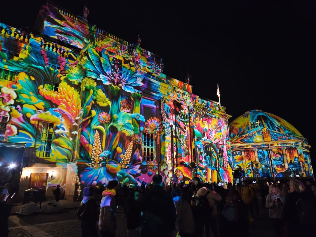 Abends war der Plan, gemeinsam die erleuchteten Gebäude des 'Festival of Lights' anzuschauen. Von unserer Stadtführerin nur in einem Nebensatz erwähnt, hatten wir das Festival und dessen Besucheranzahl allerdings komplett unterschätzt. Ungeahnte Massen schoben sich über die Gehsteige entlang von 'Unter den Linden'. Also erfolgte die Erkundung doch wieder in Kleingruppen bevor es müde zurück nach Moabit ins Hostel ging - nicht ohne noch - zum Teil aktiv - eine fantastische Breakdance-Truppe zu unterstützen... gute Nacht!
