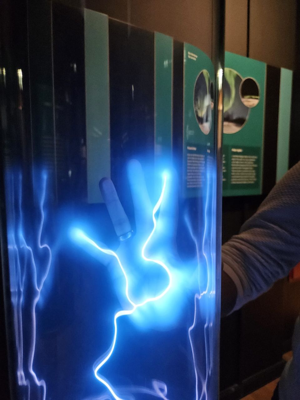 Deutlich fitter - zumindest manche - starteten wir in einen neuen 'Museumstag'. Während die einen vormittags im Stasi-Museum auf den Spuren Erich Mielkes und der Stasi wandelten und deren perfiden Überwachungsmethoden kennenlernten, erkundeten die anderen im Spektrum Science Centre die Welt der Wissenschaft - Elektrizität, Magnetismus, Optik, Akustik, Kraft, Energie etc. - dargeboten in vielen verschiedenen Experimenten, die selbst durchgeführt werden durften. Und so beobachteten wir das Foucaultsche Pendel, machten uns dank Spiegeln mal dick, mal lang, erzeugten Töne und Farben auf unterschiedlichster Weise und erzeugten Lichtblitze und elektrische Entladungen - manchmal auch zum Leidwesen der neben einem Stehenden.