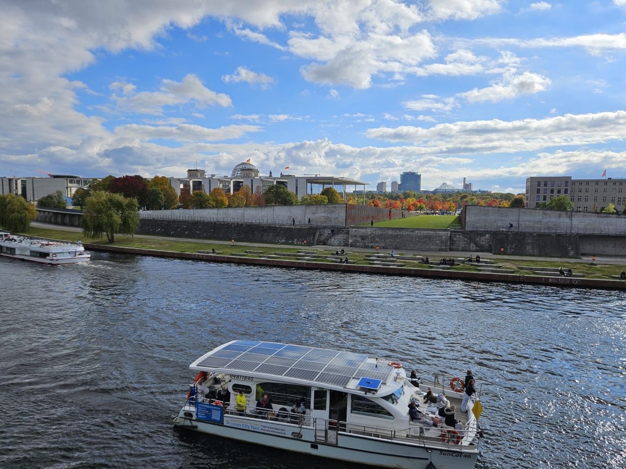 Nach dem schauderhaften Wetter von gestern, zeigte der Wettergott ein Einsehen und beschenkte uns ab morgens mit Sonnenschein und blauem Himmel. Genau richtig für unsere sehr ausführliche aber trotzdem extrem kurzweilige Stadtrundfahrt, die uns durch alle wichtigen Straßen und an allen interessanten Sehenswürdigkeiten der Berliner Innenstadt vorbeiführte... mitten durch Verkehrschaos, Straßensperrungen und jede Menge Baustellen... Berliner Alltag eben. Als wir dann auch noch durch eine polizeiliche Absperrung wegen eines Staatsgastes aus der Ukraine aufgehalten wurden, wendete unser Busfahrer kurzerhand heroisch auf der doch recht schmalen zweispurigen Straße - ohne wesentliche Spuren in den umgebenden Seitenstreifen zu hinterlassen - um uns schließlich zuverlässig am Alex zum Mittagessen zu entlassen.
