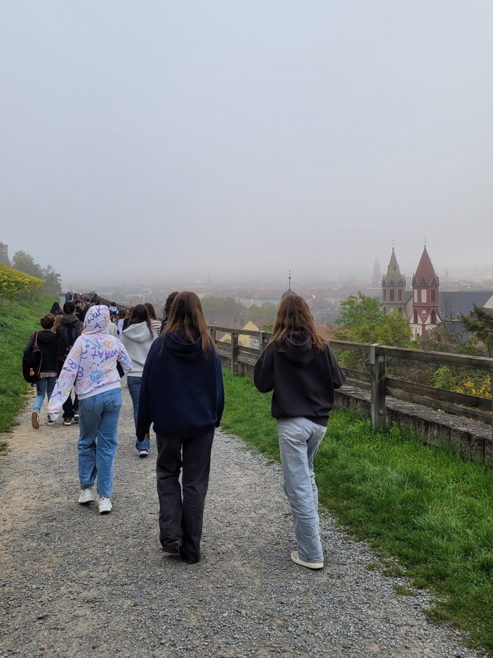 Bild 1: Spaziergang zur Marienfestung zwischen den Weinstöcken im Nebel