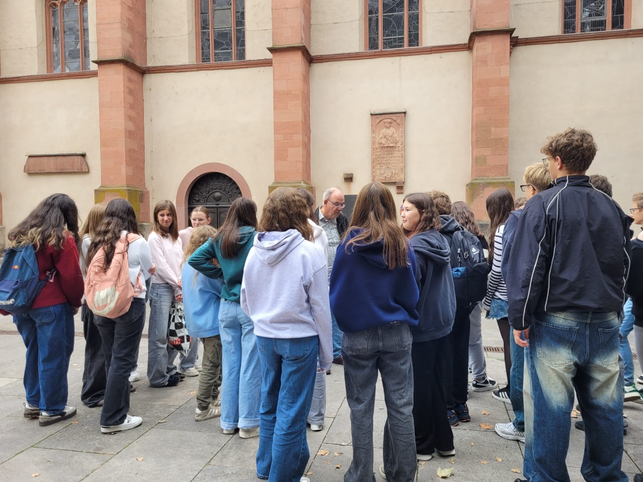 Bild 1: Interessiert beteiligten wir uns an der Führung durch die Synagoge in Veitshöchheim