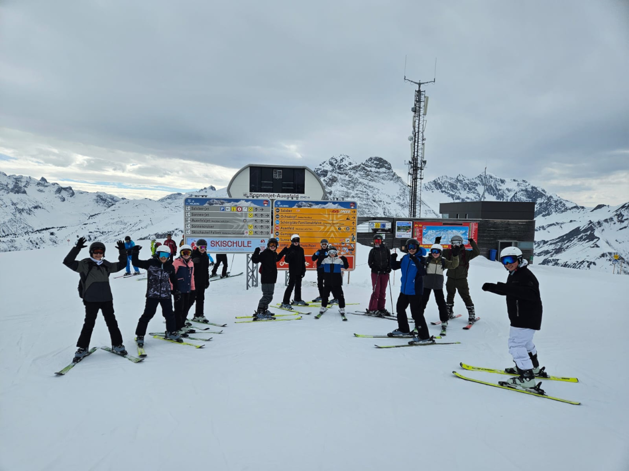 … das wurde uns – nun schon im 20. (!) Jahr – von unserer Herbergsmutter Astrid versprochen… und – wie jedes Jahr – hatte sie auch irgendwie recht. Nach einem etwas grauen Montagnachmittag folgten eineinhalb Tage herrlichster Sonnenschein, der nicht nur zu hervorragender Laune führte, sondern auch zu skifahrerischen Höchstleistungen anspornte! Während die Fahrergruppe das Skigebiet von Warth-Schröcken erkundete, sammelten die Anfänger bei frühlingshaften Temperaturen erste Skierfahrungen, lernten mit Pizza und Pommes zu bremsen und Kurven zu fahren und eroberten nach und nach den Tellerlift und die dazugehörige Piste. Dabei stellte sich ein Großteil so gut an, dass dieses Jahr – zum ersten Mal – nicht nur der Doppelsessellift, sondern sogar der 6er-Sessellift erobert wurde, der unsere Anfänger auf stattliche 2044m führte. Am Donnerstag erfüllte sich dann noch das Versprechen des Pulverschnees. Über Nacht war es deutlich kälter geworden und hatte so viel geschneit, dass die Frühlingswiesen rund um die Unterkunft wieder verschwunden waren und sich stattdessen eine Winterlandschaft darbot. Entsprechend mehr hatte es auf dem Berg geschneit und so gab es statt glattplanierter Pisten am Abschlusstag Tiefschneefahrten ohne Sicht – also eigentlich Fahren nach Gefühl. Aber auch das war für unsere Pistengötter kein Problem und alle genossen das Pflügen und Surfen durch den wunderbar weichen Schnee, der auch die virtuosesten Stürze abfing und manche Landung deutlich abfederte. Erschöpft aber stolz und gutgelaunt ging es zurück in die Unterkunft, wo noch der obligatorische letzte Abend mit der Hausralley und die Ehrung für unsere 20-jährige Treue wartete.