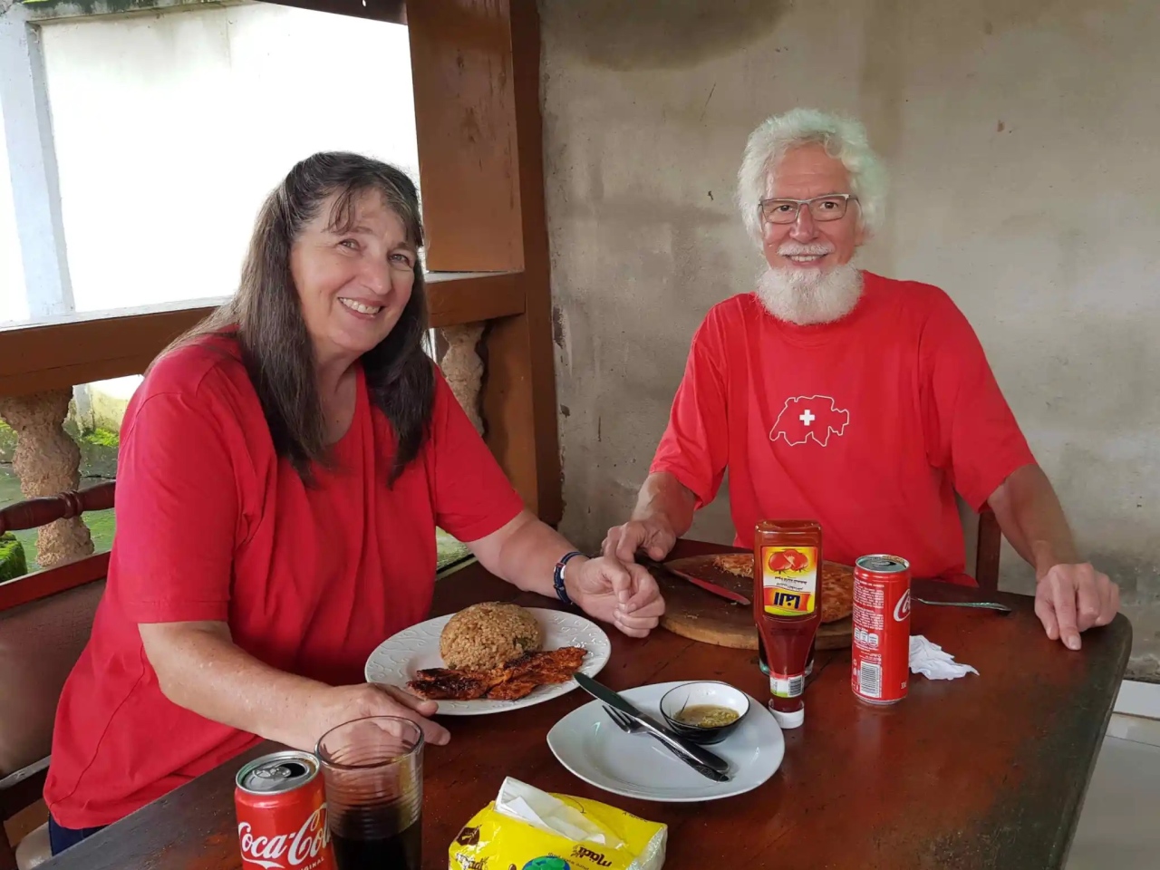 Unser Luxusessen am 1. August – den wir als Schweizer natürlich feiern müssen. Und weiter geht die Regenzeit . . .