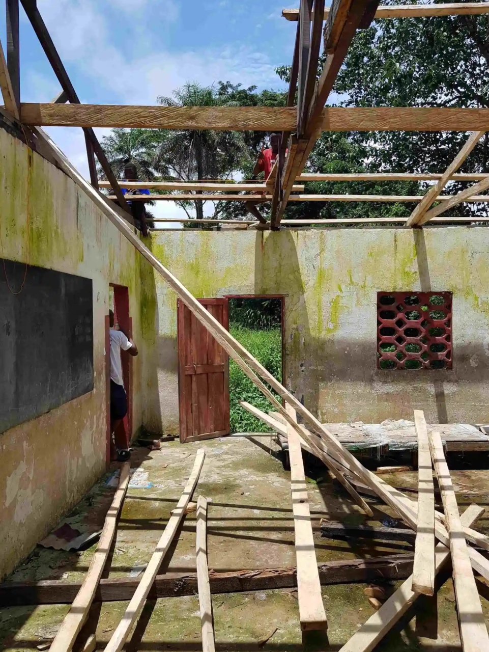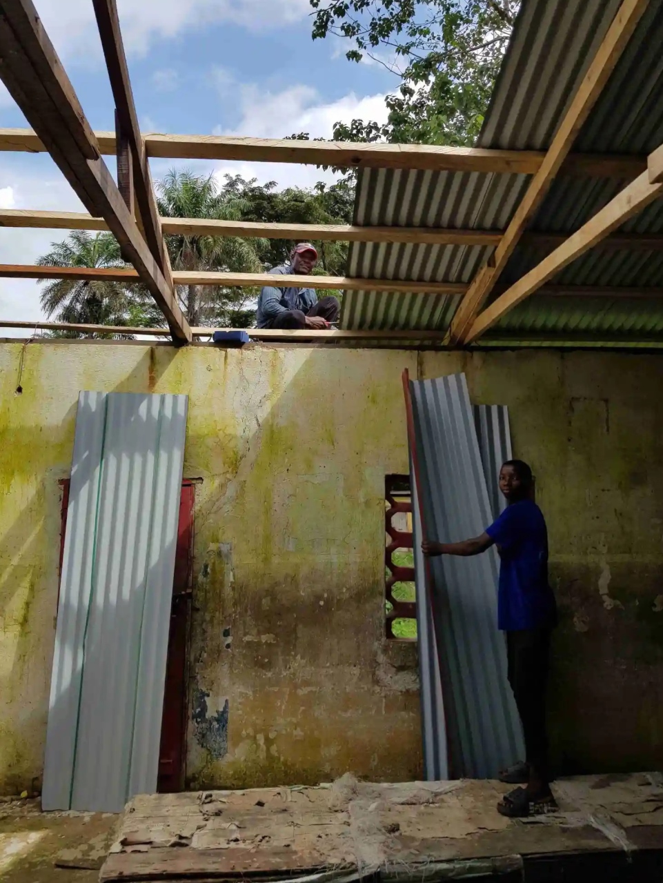 Im April ein Sturm ein Gebäude der nahegelegenen Grundschule unserer Kirche abgedeckt. Das ist gerade das zweite Projekt. Mit Sondermitteln (2800 Euro) der Kirche aus Deutschland sind wir gerade an der Arbeit diese neu zu decken. Ganz schön schwieriges Unterfangen während der Regenzeit mögliche Zeitfenster zum Arbeiten zu finden. Heute sind wir besonders dankbar für einen Tag bislang ohne Regen, an dem das Dach bis am späten Abend fertig gedeckt sein könnte.