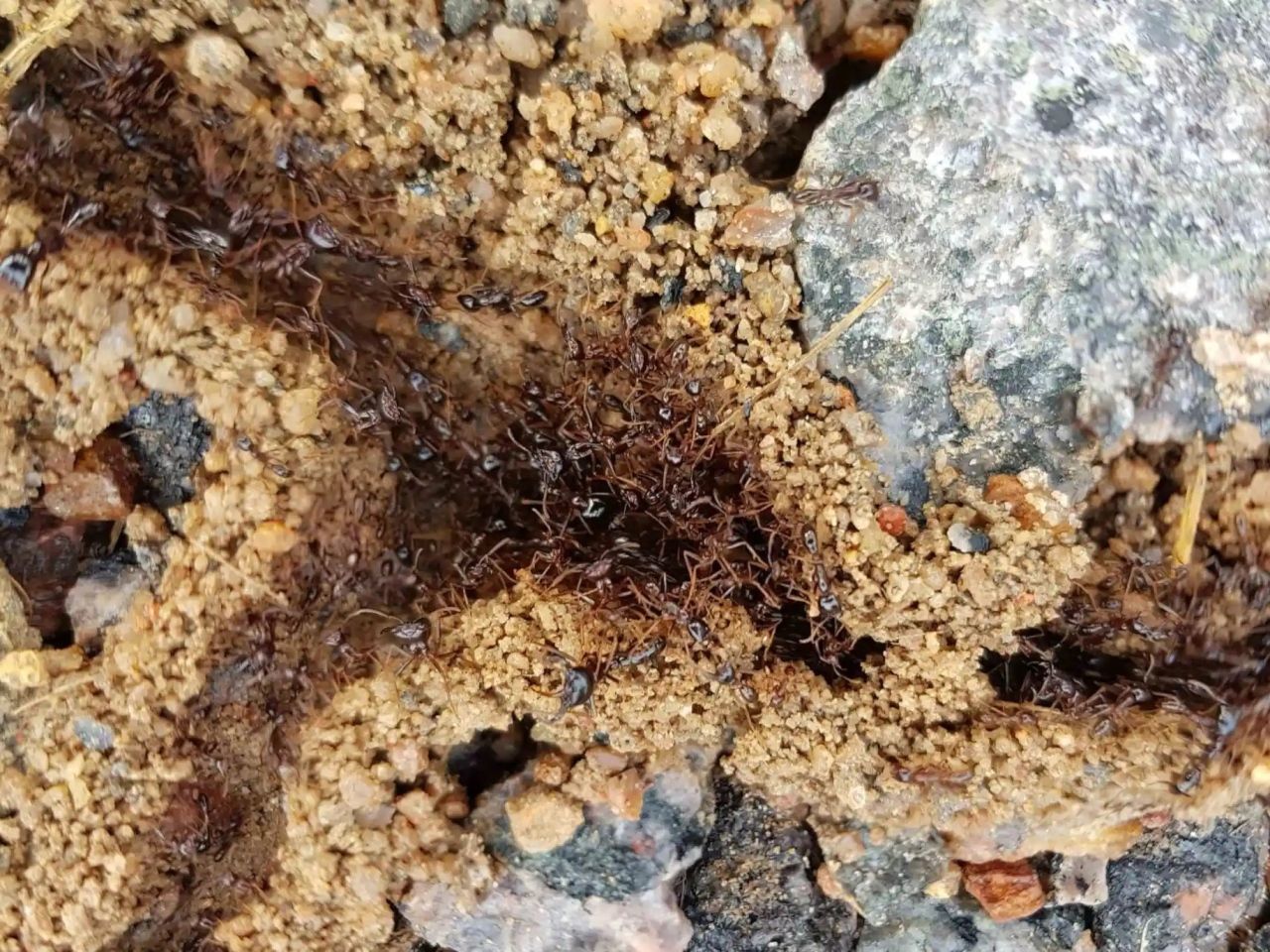 Die Regenzeit ist auch die Zeit in der die Wanderameisen unterwegs sind. Geschützt durch Soldatenameisen wandern Millionen Ameisen einen ganzen Tag lang über vorbereitete und gegen Regen geschützte Straßen. Die wurden von den Ameisen extra gebaut und zum Teil mit Erde überdacht. Einfach faszinierend!