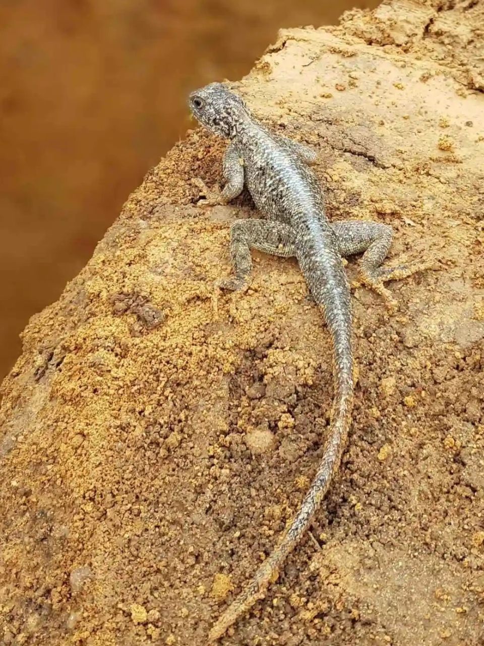 Dabei hat ein vom Rand zuschauendes Eidechsenmännchen genervt, bis wir herausgefunden haben, dass seine Partnerin in die Grube gefallen war. Nach erfolgreicher Rettungsaktion war auch er verschwunden – kein Wunder.