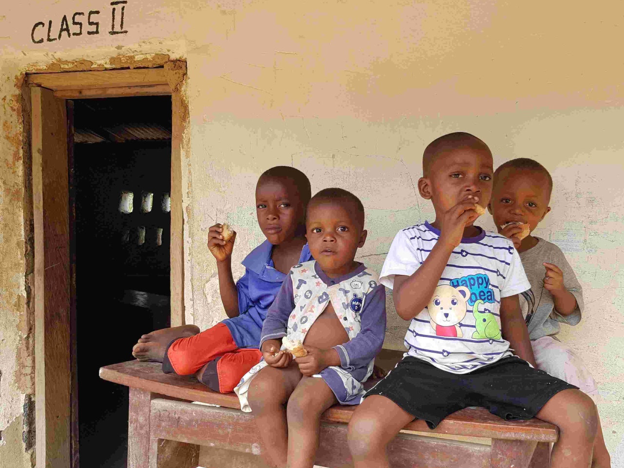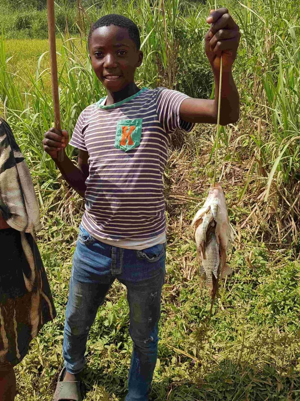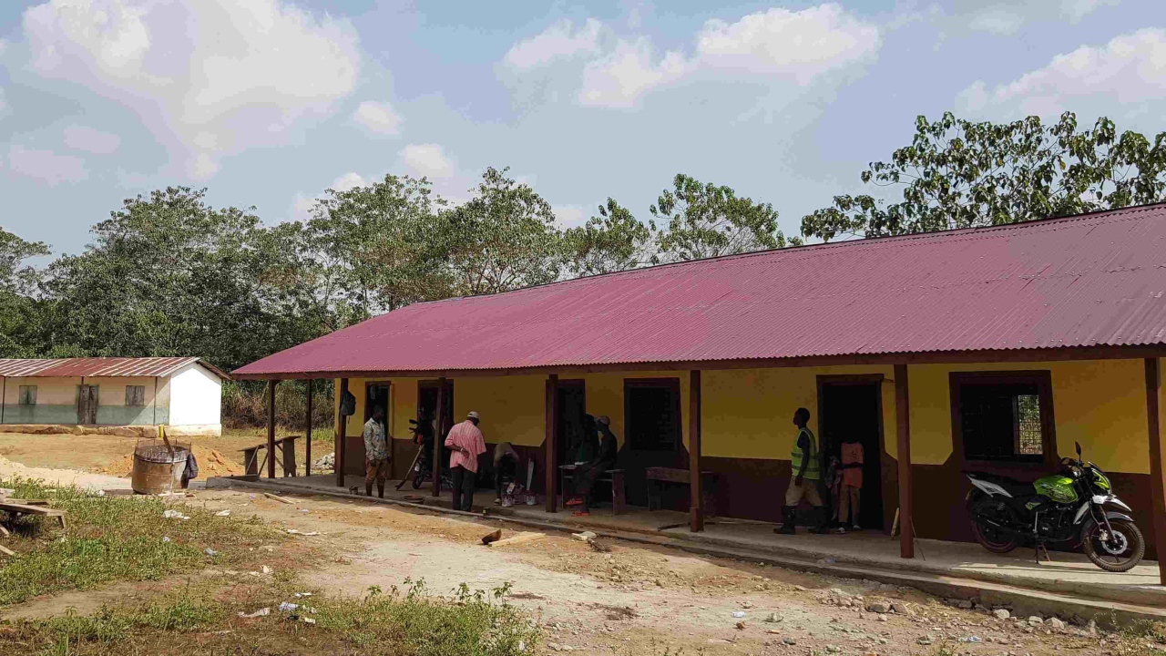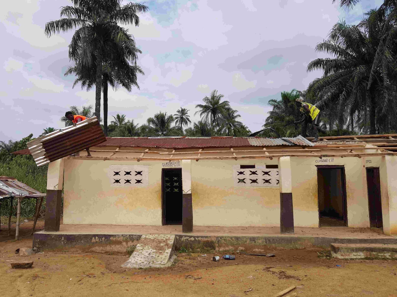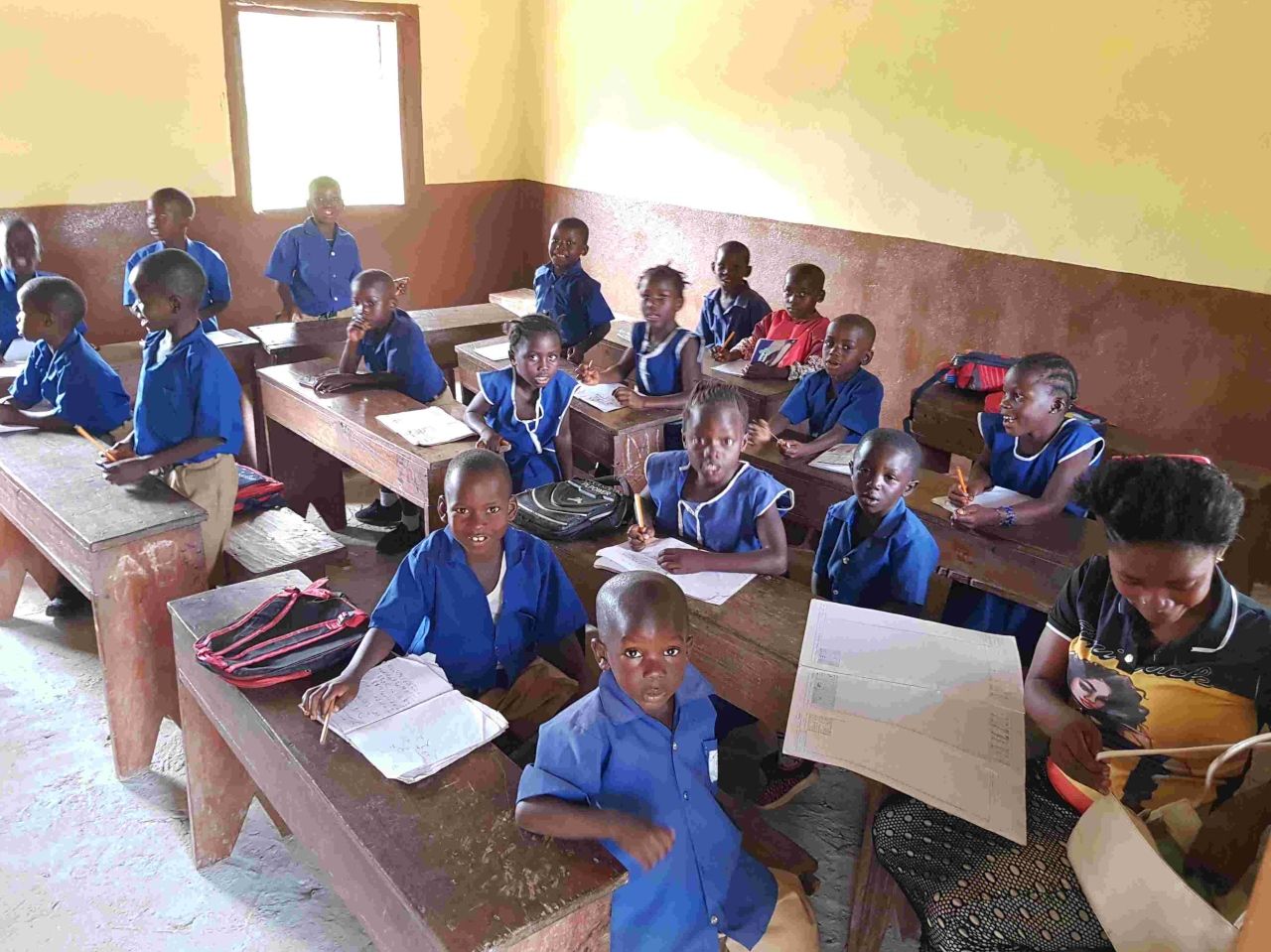 Die beiden Schulgebäude konnten wir zusammen mit den Helfern aus dem Dorf vor Weihnachten fertigstellen. Was für eine Freude. Wir bekamen als Geschenk ein Huhn, eine große Yamswurzel und Kochbananen überreicht.
