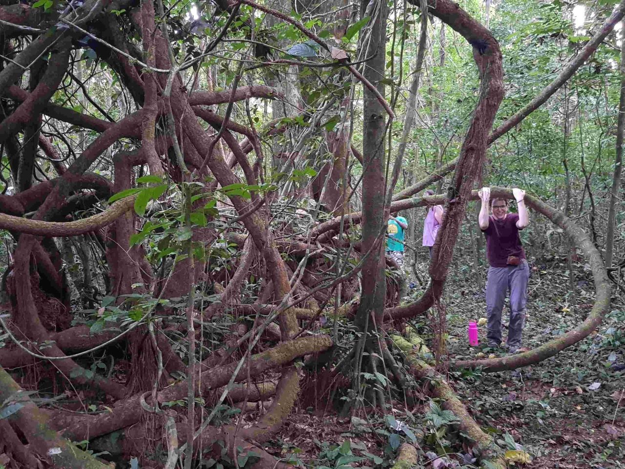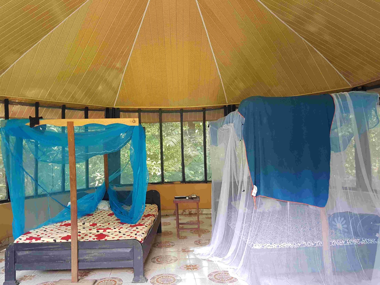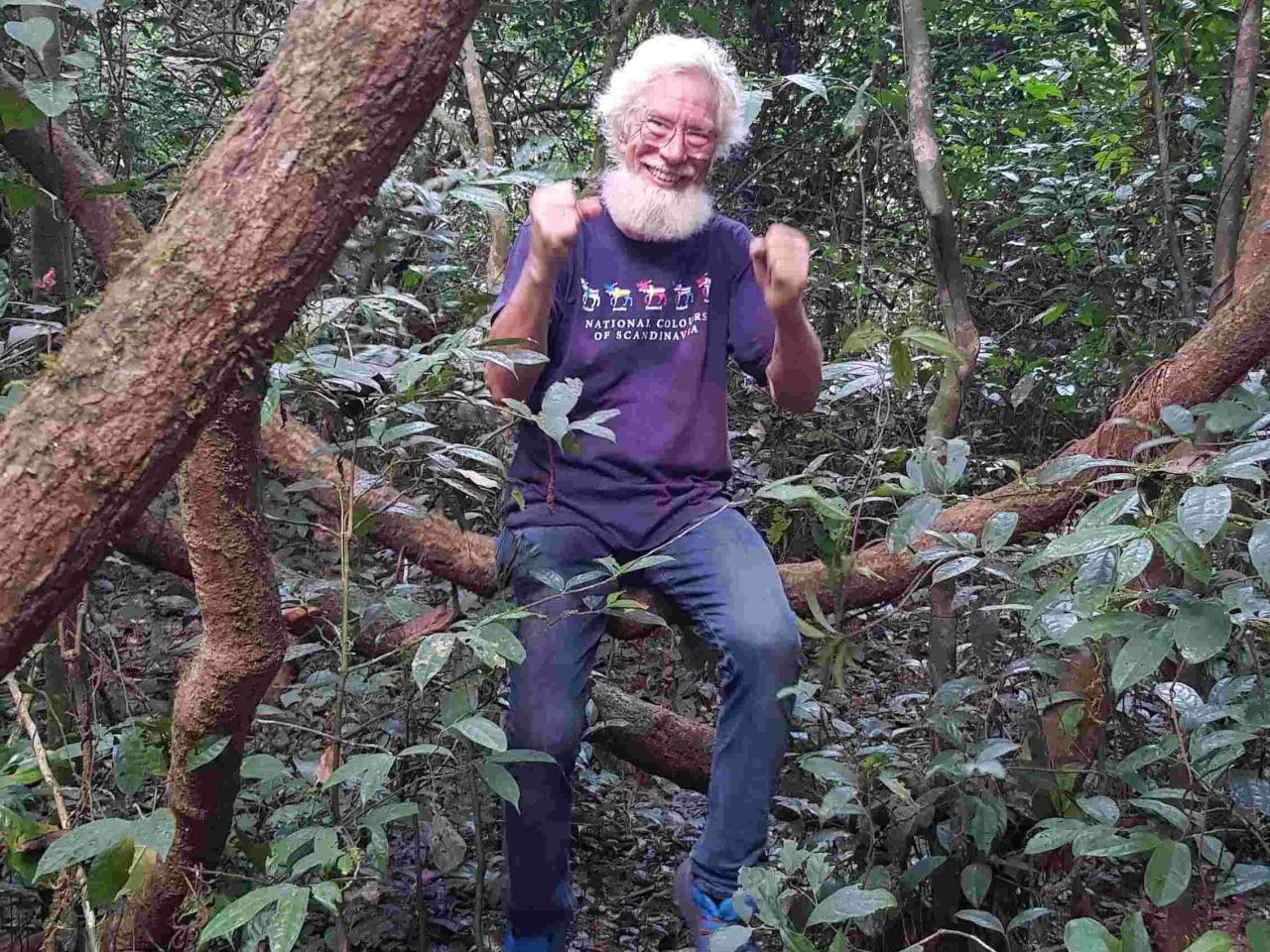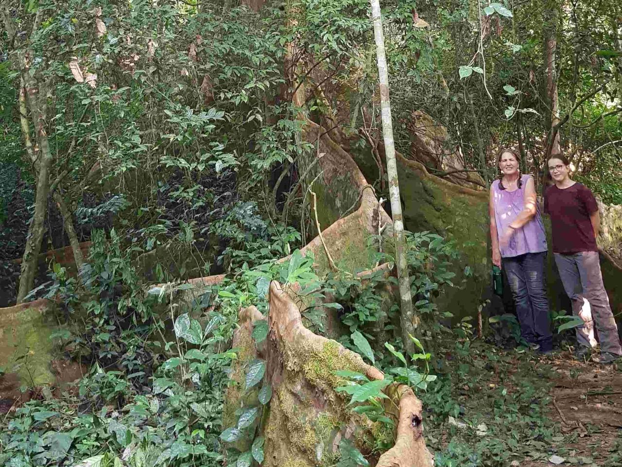 Die Tage danach waren wir zusammen mit den Voluntären Anna und Mael südlich von Bo auf einer Insel im Fluss Moa. Einem ganz besonderen Naturreservat. Dort haben wir im Camp übernachtet – offene Rundhütten mit Betten geschützt durch Moskitodraht. Mit den ganzen Geräuschen des Urwalds, bis hin zu schreienden Affen. Diese sind allerdings sehr scheu und man braucht oft viel Geduld die wirklich bestaunen zu können. Mir gelangen sogar einige Schnappschüsse der scheuen Tiere (black-and-white Colobus und red Colobus), die ganz oben in den Baumwipfeln turnen. Bäume mit über 80m so unvorstellbar hoch – Bambusgras von 30 – 40m Höhe und vielen besonderen und seltenen Tieren. Sogar einem Palmkern-Geier und bei der Schlussüberfahrt mit dem Boot noch einem Kingfisher/Eisvogel. Hihi und die Fußspuren der Miniflusspferde haben wir auch gesehen.