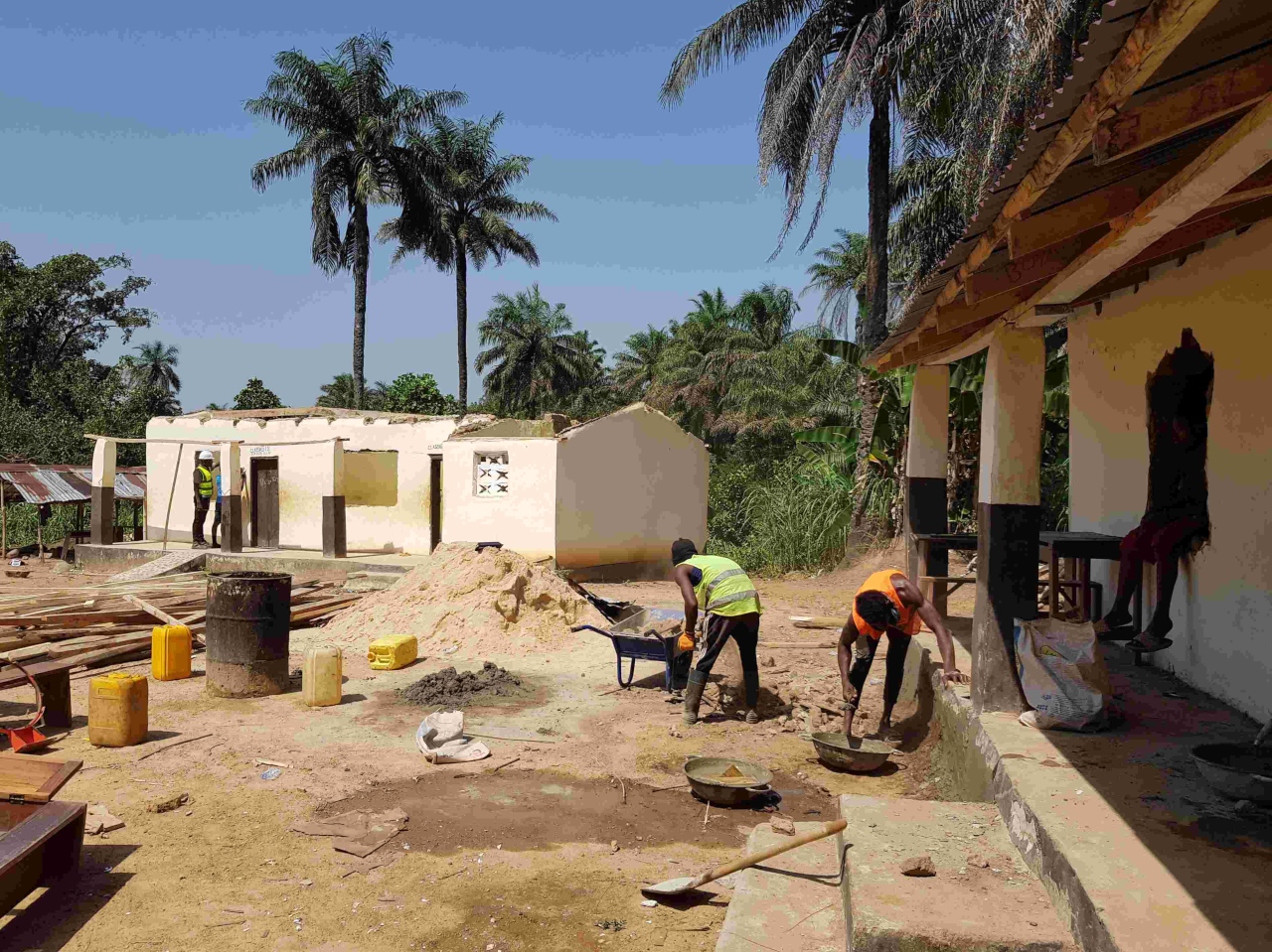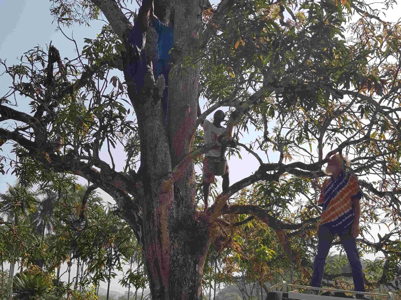 Da stehen zwei ältere Schulgebäude – eine Schule unserer Kirche mit einem notdürftig reparierten Dach und nachträglich fast ganz zugemauerten Fenstern – insgesamt leider wenig gepflegt. Der Chief sicherte uns große Hilfe zu – letztendlich machen wir die Arbeit alleine, da wenn überhaupt nur die Kinder des Dorfes uns helfen. Auch die Essensversorgung mussten wir zum Teil selbst übernehmen. Schade – dass hier so wenig Resonanz kommt. Es hat fast zwei Wochen gedauert, bis wir endlich die Balken für die Dachkonstruktion vom örtlichen Powersaw-man geschnitten bekamen.
