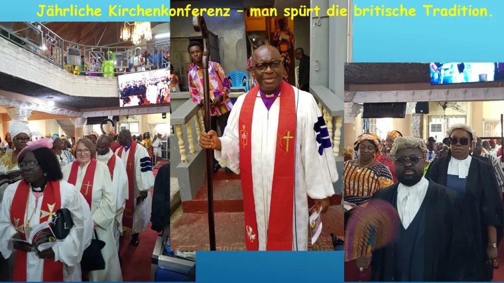 Uns geht es gut – Wir sind seit beinahe einer Woche in Freetown für die jährliche Gesamtkonferenz der Kirche (UMC). fast ausgelassenen Es ist faszinierend, wie sich dabei die Elemente der beinahe ausgelassenen afrikanischen Fröhlichkeit im Gottesdienst mit mancher englischen Tradition verbindet – sich aber gegenseitig nicht stört. Zu Besuch war auch unsere deutsche Bischöfin im Ruhestand Rosemarie Wenner. Das hat uns gutgetan.