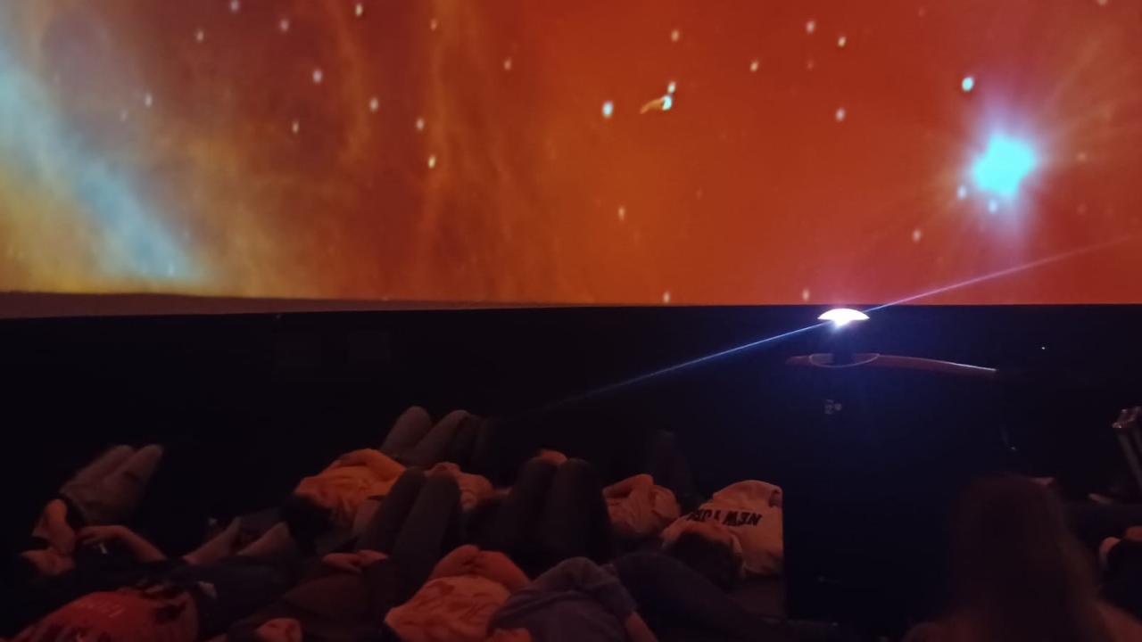 Hochauflösende NASA-Bilder und projiziertes Filmmaterial unterstützen das Lernen über das Sonnensystem und darüber hinaus.“