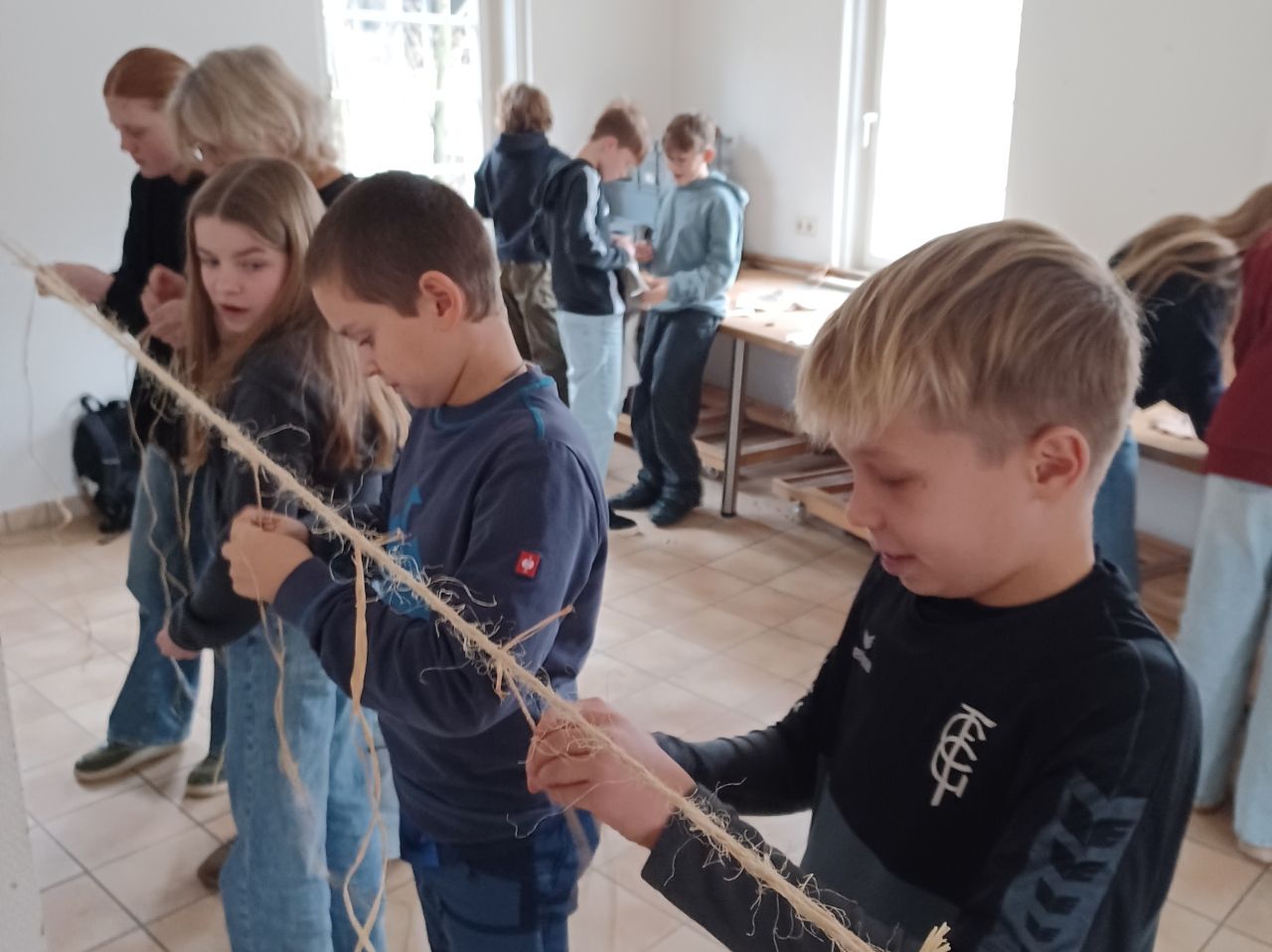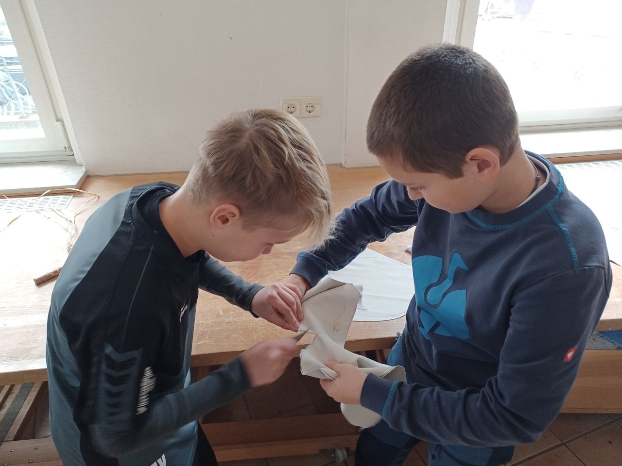 Einen besonderen Einblick in die Lebenswelt der Steinzeit konnten unsere Sechstklässler im Urgeschichtlichen Museum in Blaubeuren gewinnen. Für die eine Hälfte ging es zunächst zum Steinzeit-Workshop, während die andere nach einer kurzen Pause mit der Museumsführung begann. Die Aufgabe im Workshop: Lederbeutel herstellen mit Werkzeugen und Materialien, die so auch schon vor 40.000 Jahren verwendet wurden. Für die Arbeit mit Leder, Bast und Feuerstein waren Kooperation und handwerkliches Geschick gefragt und am Ende konnten alle ein selbst produziertes Beutelchen mit nach Hause nehmen. Ähnlich wie die Menschen in der Steinzeit haben auch unsere Schüler überlegt, was man aus kleinen Lederresten sonst noch so alles herstellen kann und waren dabei sehr kreativ.