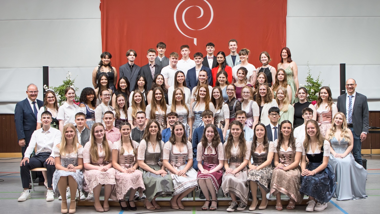 Vor der Zeugnisausgabe wurden zahlreiche Ehrungen vorgenommen. Monika Kogge für den Elternbeirat überreichte Anna Schütz den Albonus-Preis 2024 für hervorragendes Engagement in verschiedenen Bereichen des Schullebens, stellvertretend für den sehr aktiven Jahrgang. Für die besten Abiturprüfungen wurden Pauline Wolfrom mit der Note 1,1 sowie Anna Schütz, Tobias Hihler, Linus Kirchner und Lisa Schindler mit 1,2 ausgezeichnet.