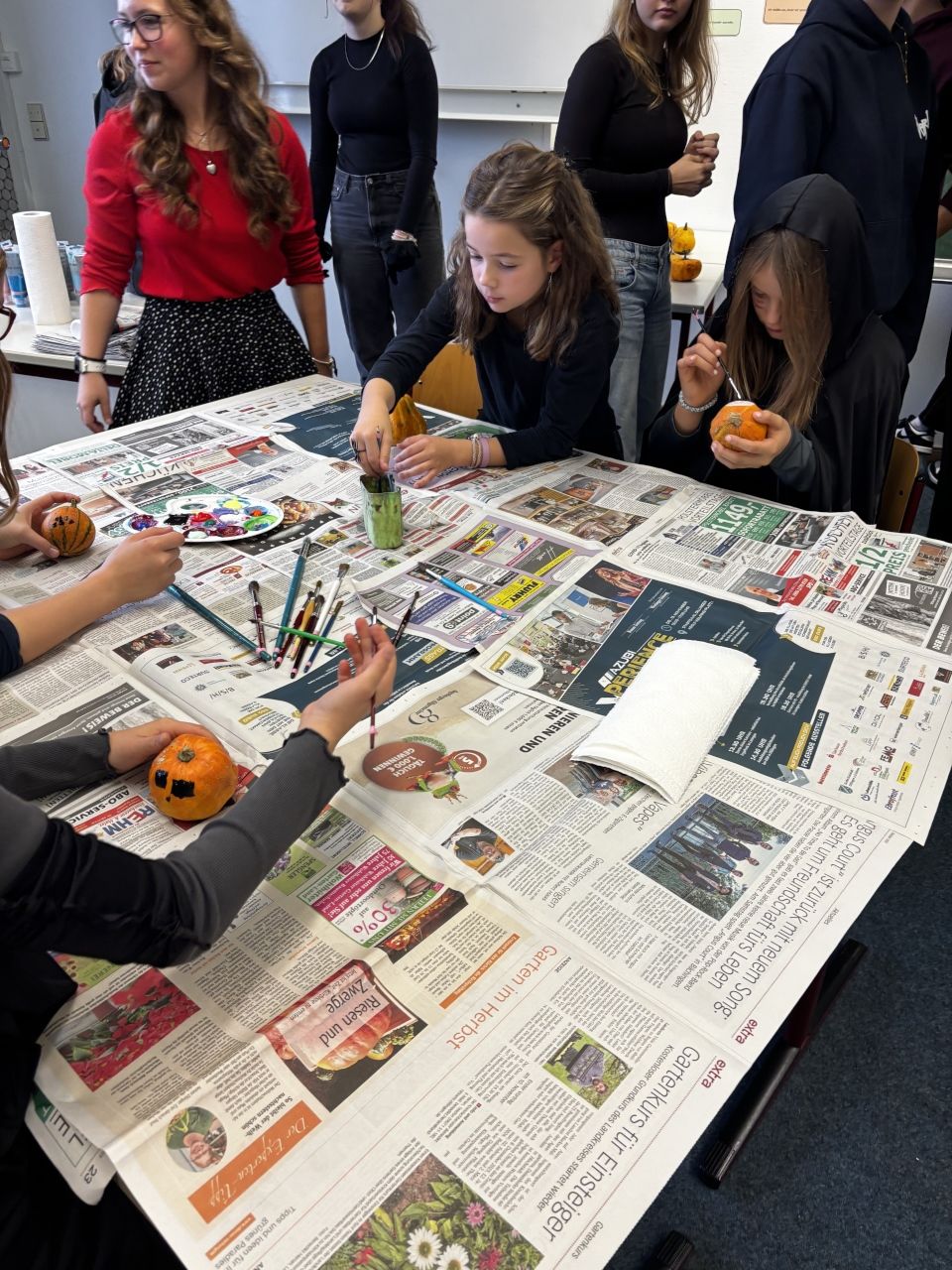 Mit viel Engagement und Kreativität hatten die Tutoren ein abwechslungsreiches Programm vorbereitet. Die Schülerinnen und Schüler konnten Kürbisse bemalen, gruselige Snacks genießen und sich bei verschiedenen Spielen austoben. Besonders beliebt waren das Völkerballturnier in der Turnhalle und das spannende Gemeinschaftsspiel „Werwolf“, bei dem alle mitfieberten.